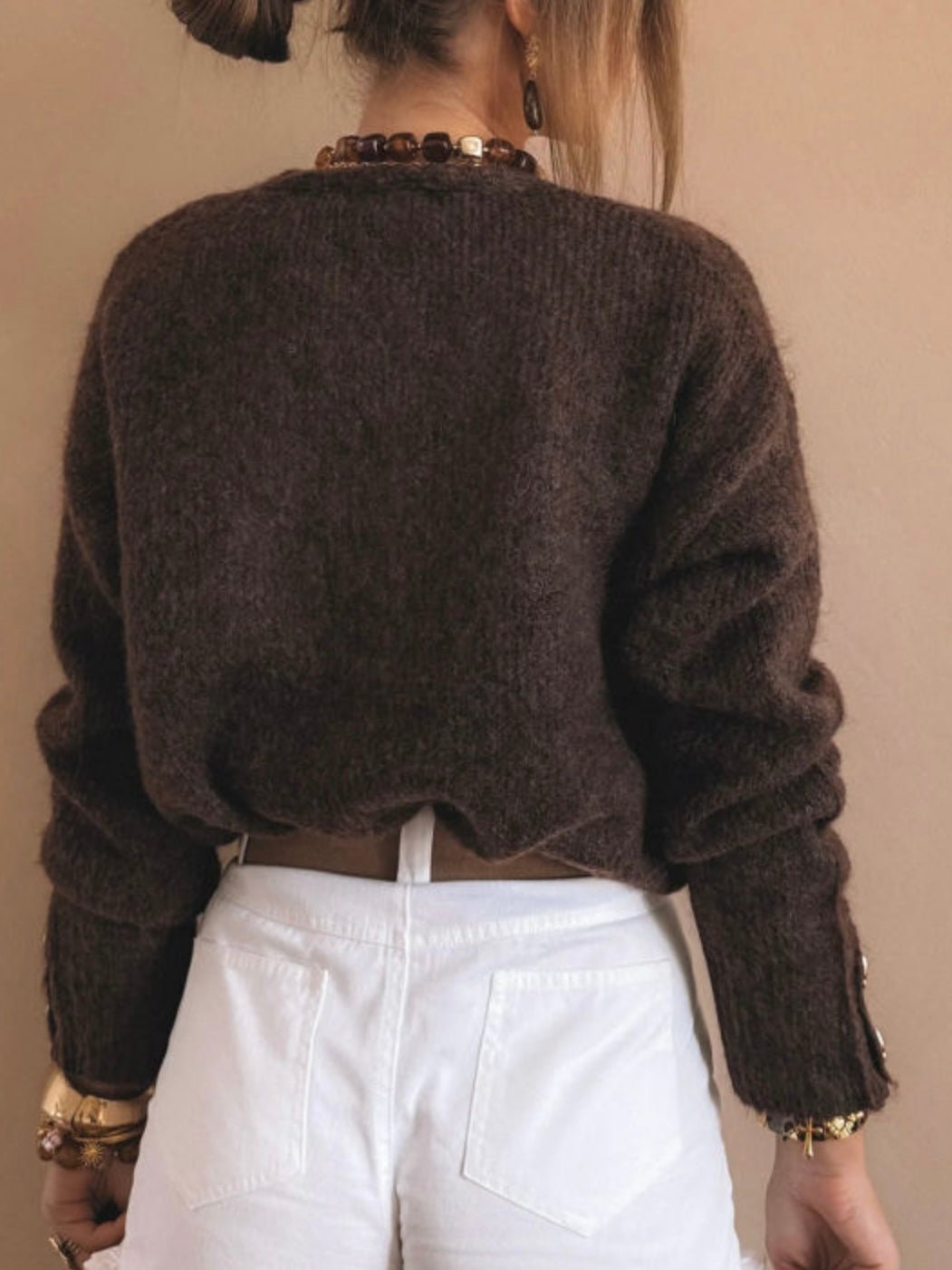 Layers can feel too plain—but this cardigan solves that with heart-shaped metal buttons that add a touch of romance. It’s cozy, flattering, and makes everyday styling fun and feminine.